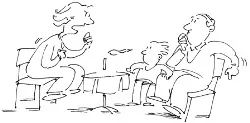 在治疗中,家庭治疗师很愿意和家庭坐同一个板凳,如果习惯坐在家庭的对面,让家庭把麻烦恼怒一股脑儿的抛过来,那才是吃不了,兜着走。