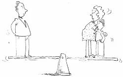 实际上,家庭治疗师并不会匆忙的否认画面上的情景,“倾斜关系”常常隐含着一种内在补偿和和谐。换一句话来说,没有一个怯懦的父亲,也不会冒出了一个强悍的母亲,两者谁是因谁是果很难分清。