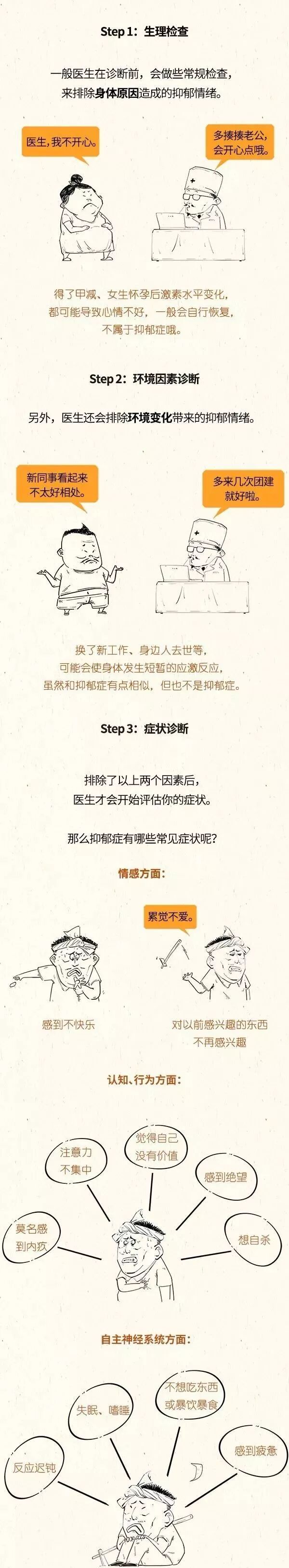只要同时满足心境低落和以上任意4种症状,并且抑郁症发作持续两周以上,即可能被诊断为抑郁症。多数病例有反复发作的倾向,每次发作大多数可以缓解,部分可有残留症状或转为慢性。